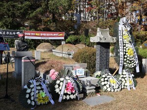 【투데이신문 박효령 기자】 전태일재단은 13일 오전 11시 마석 모란공원 전태일 묘역에서 제54주기 전태일 열사 추도식과 제32회 전태일노동상 시상식을 열었다.올해 제54주기 전태일 추도식은 ‘모든 노동자에게 근로기준법을 적용하라’는 의미를 담았다.이날 추모기도는 박승렬 목사가 진행했으며 추모공연은 종합예술단 봄날과 전태일이소선 장학생 권도엽 학생이 맡았다. 추도사에는 전국민주노동조합총연맹 양경수 위원장, 한국노동조합총연맹 류기섭 사무총장, 김용균재단 김미숙 이사장이 나섰다.추도식과 함께 전개된 제32회 전태일노동상 시상식에서 전태