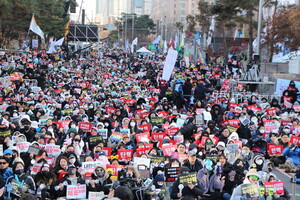 【투데이신문 권신영 기자】 윤석열 대통령에 대한 2차 탄핵소추안의 표결을 앞두고 수많은 시민들이 국회 앞으로 집결해 탄핵을 촉구하고 있다. 민주노총 등 시민단체들은 14일 오후 3시 범국민촛불대행진을 개최했다. 이날 추산 100만명에 가까운 인파가 국회 앞에 모여 윤 대통령의 탄핵소추안 표결 결과를 기다렸다.이날 참여한 이들은 촛불과 ‘내란죄 윤석열 즉각 탄핵’이라고 적힌 손팻말을 들고 “윤석열은 탄핵하라” 등 구호를 외쳤다.
