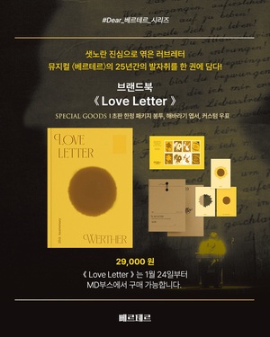 【투데이신문 김지현 기자】 뮤지컬 (제작 CJ ENM)가 올해로 25주년을 맞아, 관객과 작품이 쌓아온 소중한 기억과 진심을 담은 브랜드북 《Love Letter》를 오는 24일 발간한다.2000년 두산아트센터 연강홀에서의 초연을 시작으로, 뮤지컬 는 한결같이 순수하고 절대적인 사랑의 가치를 전하며 관객들에게 깊은 울림을 선사해온 작품이다. 원작인 괴테의 소설 《젊은 베르테르의 슬픔》을 바탕으로 한 이 작품은 한국 창작 뮤지컬의 대표작으로 자리 잡으며, 시대를 초월한 매력을 증명해왔다. 이번에 발간되는 브랜드북