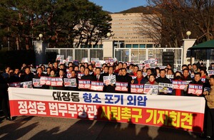 【투데이신문 박효령 기자】국민의힘이 ‘대장동 비리 의혹 사건’ 항소 포기를 두고 연일 장외전까지 벌이며 정부·여당 압박 수위를 최고조로 끌어올리고 있다. 국민의힘은 여소야대 정국에서 지지층 결집 효과를 노리며 대장동 논란을 핵심 전략 카드로 밀어붙이고 있는 모양새다.국민의힘은 18일 오전 경기 과천시 법무부 청사 앞에서 ‘대장동 항소포기 외압 정성호 법무부장관 사퇴촉구 기자회견’을 열었다. 지난 11일 법무부 앞에서 긴급 현장 규탄대회에 나선 지 일주일 만이다.이날 국민의힘 장동혁 대표는 “법무부 정성호 장관은 6년 전 법무부 장관