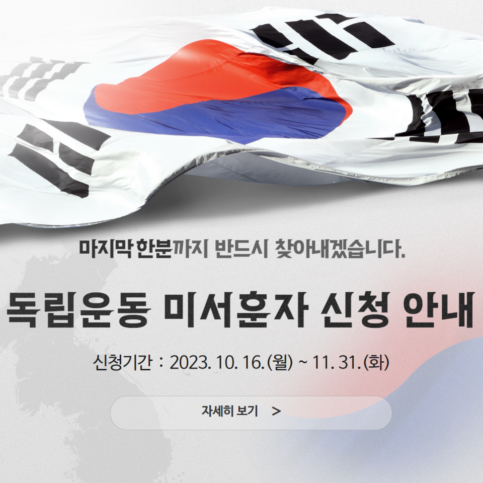 전남도(현재 행정구역)에 본적을 두고 1895년부터 1945년 해방된 날까지 독립운동에 참여한 분의 후손 또는 독립운동 입증자료를 보유한 도민 등은 전남도 누리집 도정소식란의 부서자료실(사회복지과)에 접속해 신청할 수 있다.