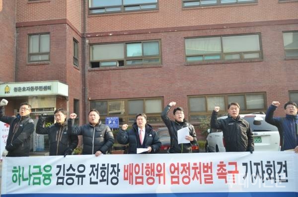 【투데이신문 박나래 기자】 하나금융지주 김승유 전 회장의 배임행위 등에 대해 엄정한 처벌이 이뤄져야 한다는 탄원서가 청와대에 제출됐다.
