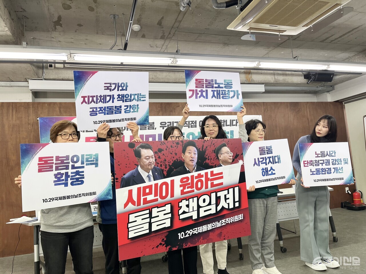 아울러 조직위는 △국가 책임·공공중심 돌봄체계로 전환 △모든 시민에 대한 전 생애 권리기반 돌봄체계 구축 △ 남성생계부양자 모델 타파 후 ‘보편적 돌봄제공자 모델’로 재구성 △충분한 돌봄노동 인력 확보 △사회서비스 시설 국가 및 지자체가 직접 운영 △ 돌봄노동의 가치 재평가 △돌봄노동자 임금 및 노동조건 개선 △돌봄기본법 제정 등을 요구했다.