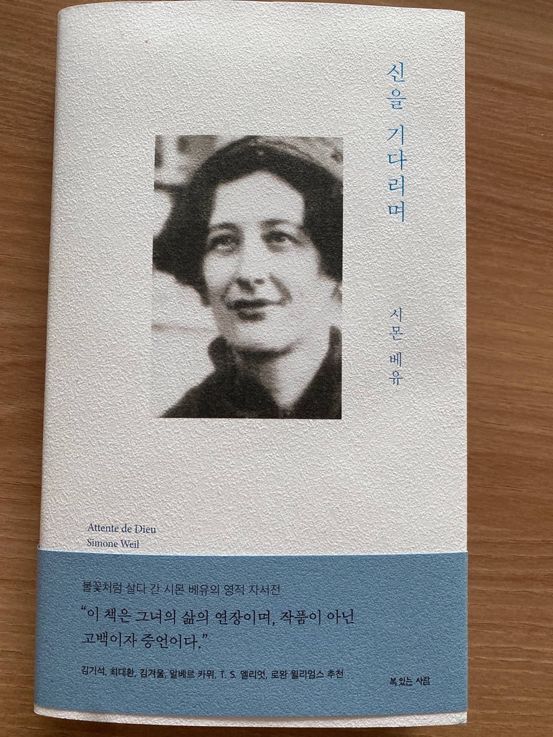 《신을 기다리며》를 펼쳐서 우리 자신을 돌아보기 위한 거울로 삼으면 좋겠다. 이러한 독해 방식 안에서 외려 시몬 베유의 예리한 지성과 섬세한 감성, 심오한 영성이 가장 조화롭게 드러나는 경험을 하게 되리라 믿는다. 아무쪼록 더 많은 독자들이 《신을 기다리며》를 읽기를 바란다. 그 안에서 자신을 돌아보고 앞으로 더 나아가는 소중한 경험을 하게 될 것이다.