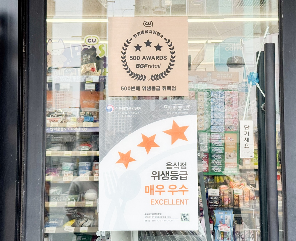 【투데이신문 왕보경 기자】편의점 CU를 운영하는 BGF리테일이 500개 점포에서 ‘음식점 위생등급제’를 인증 취득했다.