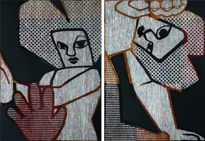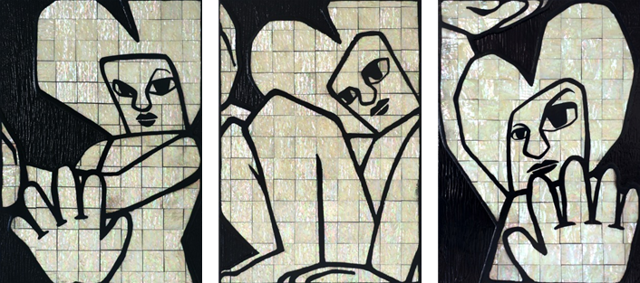 (우) <ERROR>, 2024, 목재 위에 옻칠 실크스크린, 자개, 636x636mm