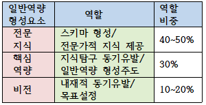 지금까지 지적한 것과 같이 인성5역량 기반 자아 정체성, 파워5속성 및 파워프로세스는 일반역량 형성을 위한 핵심역량이다. 지적한 것과 같이 일반역량은 일반역량형성3요소 즉, 핵심역량, 관련 지식 및 비전의 상호작용으로 형성되며, <표1>은 이들의 역할이다. 투데이신문(2024)에서 지적한 것과 같이 기업가정신의 특성과 방향은 유기체적 가치측정 프로세스의 준거의 틀과 이들에 작용하는 파워5속성 패턴에 관계하고, 그 크기는 파워프로세스의 학습에 의존한다. 따라서 개인이 기업가정신과 파워프로세스에 대한 학습을 기반으로 유기체적 가치측정 프로세스를 유발할 경우 기업가정신 함양과 함께 기업가역량이 자생적으로 개발된다.