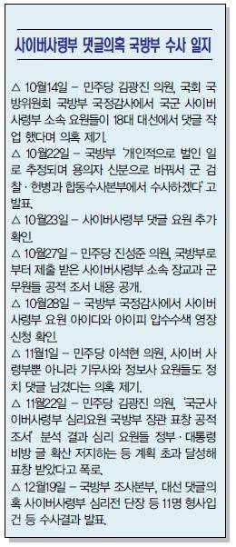 軍 “대선개입 없었다”野 “국민우롱 부실수사”