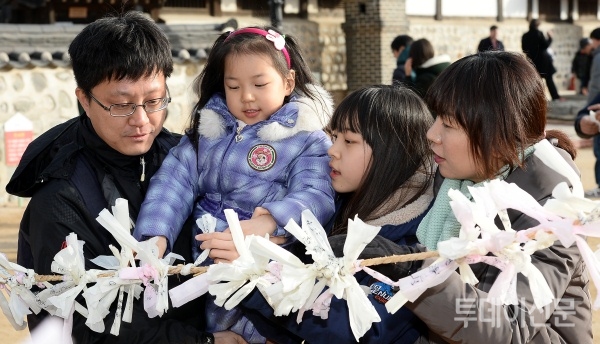▲ ⓒ뉴시스 ▲ ⓒ뉴시스 ▲ ⓒ뉴시스 ▲ ⓒ뉴시스 【투데이신문 김지현】2014년 새해 첫날인 1일 서울 중구 남산골 한옥마을에서 부모들과 어린이들이 달집과 새끼줄에 소원지를 묶고 있다.