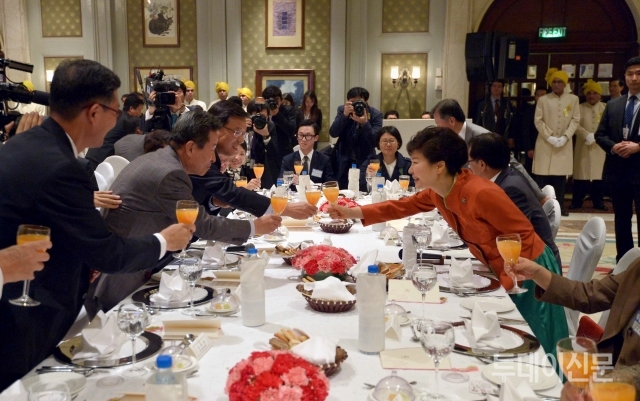 【투데이신문 홍상현 기자】박근혜 대통령이 인도 국빈방문 이틀째 일정인 16일 만모한 싱 촐리와 정상회담을 비롯한 공식일정을 이어간다.