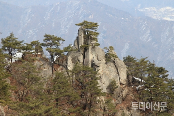 눈이 살짝 내린 가파른 운악산 자락을 밟고 올라가니 처음엔 힘들고 호흡도 거칠었지만, 바람이 불지 않아 산행하기에는 그만인 날씨였다. 문득, 산행 시 매번 날씨가 이렇게 온화하면 얼마나 좋을까란 생각이 든다.