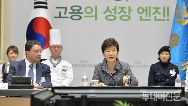 한편 이날 회의에는 유엔 세계관광기구(UNWTO)의 탈레프 리파이(Taleb Rifai) 사무총장이 참석했다. 박 대통령의 옆자리에 배석한 리파이 사무총장은 세계 관광시장에서의 한국의 역할과 기여방안에 대한 제안을 하고 한국관광 발전에 적극 협조하겠다는 뜻을 밝혔다고 청와대는 전했다.