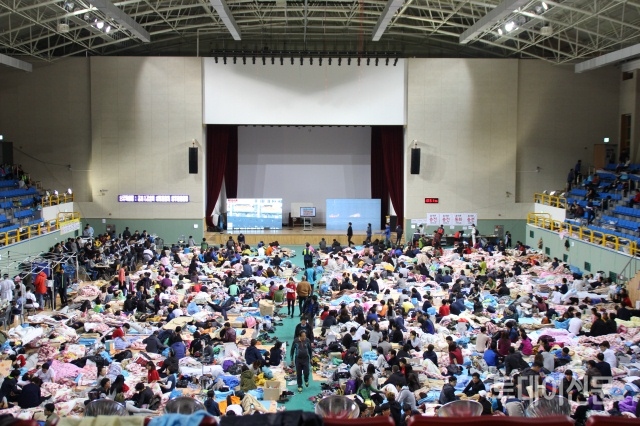 | ▲ 세월호 참사 사고 5일째인 20일에 찾은 진도 실내체육관. | ||