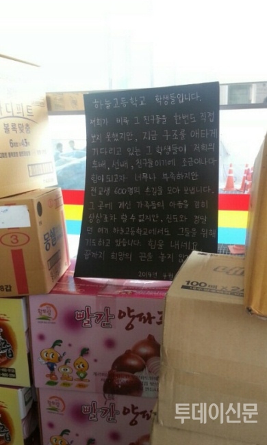 | ▲ 한 고등학교에서 보낸 구호 물품 | ||