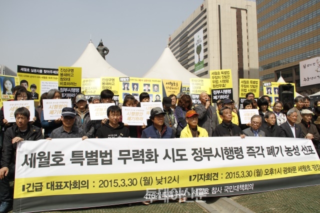 이들은 30일 오후 1시 서울 광화문 세월호 광장에서 기자회견을 열고 “지난 27일 해양수산부가 입법예고한 시행령안은 특별조사위원원들이 제시한 시행령안을 완전히 묵살했다”며 “세월호 특별법과 특별조사위원회의 조사권을 무력화시키는 시행령”이라고 주장했다.