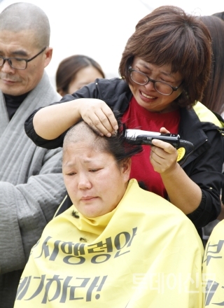 이어 전씨는 “마음 같아서는 나도 같이 삭발을 하고 싶다”며 “우리나라 국민들이 ‘나 역시 이런 일을 겪을 수 있다’는 인식을 갖고 세월호 참사 진상규명에 관심을 가졌으면 한다”고 소리쳤다.