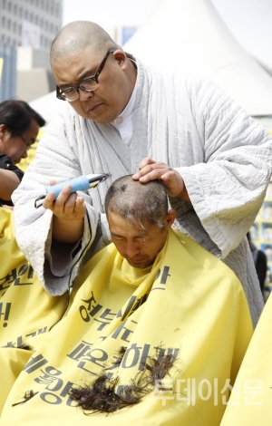 잘려 나간 머리카락이 바닥으로 툭툭 떨어져나갈 때마다 세월호 유가족의 눈물도 뚝뚝 떨어졌다.