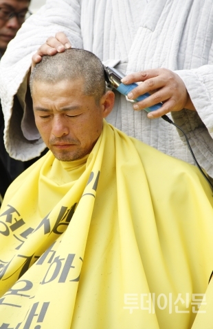 삭발은 세월호 참사에 대한 진상규명과 안전사회 구축과 선체 인양의 의지를 표명하는 의식이다. 조계종 노동위원회 노동위원 도철 스님과 지견 스님, 양한웅 집행위원장 등의 도움으로 삭발이 시작됐다.