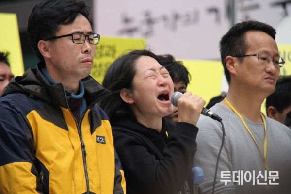 강 씨는 “우리 유가족이 죄인인가. (정부는) 내 새끼를 진도 앞바다에 수장시키고 부모들까지 죽이려고 한다”며 “대한민국에 대통령이 있나. 대한민국 국민이 진실을 밝혀달라고 울부짖는데…. 난 내새끼가 어떻게 죽었는지 똑바로 알고 죽어야겠다”고 절규했다.