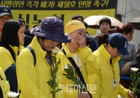 【투데이신문 한정욱 기자】세월호 참사 1주기를 앞둔 11일, 유가족과 시민들이 집회를 마치고 행진 중 에 경찰과 충돌했다. 이 과정에서 경찰은 해산 명령에 불응한 집회 참가자들에게 캡사이신을 발포하고 일부를 연행했다.