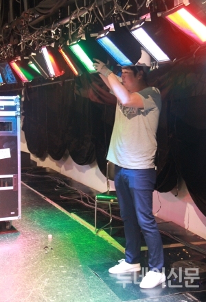 | ▲ 이문희 대리 조명작업 모습 ⓒ투데이신문 | ||