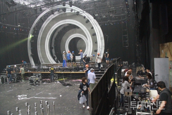 | ▲ 무대 철수 작업 ⓒ투데이신문 | ||