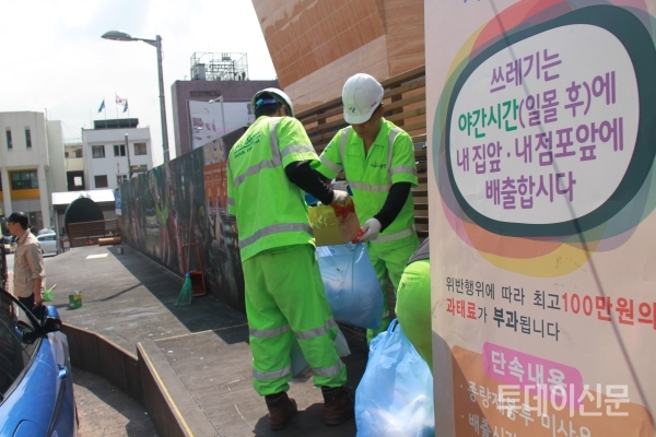 | ▲ 무단투기 단속하는 모습 ⓒ투데이신문 | ||