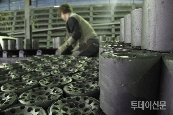 낮 12시, 한씨는 혼자 빈 트럭을 몰고 연탄 공장으로 향했다. 공장은 연탄이 나오는 과정에서 들리는 소음과 먼지로 가득했다. 바닥도, 컨베이어벨트도, 사람들의 손도…. 공장은 온통 까만색이었다. 한씨는 30분 동안 컨베이어벨트에서 쏟아지는 연탄을 자신의 차량에 실었다. 그의 얼굴에서는 굵은 땀이 흘러내렸고 머리칼은 젖어들었다.