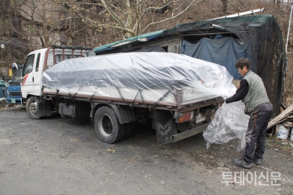 한씨는 트럭에 연탄을 가득 싣고 나오자마자 철물점에서 투명비닐 7m를 샀다. 자신이 운영하는 보관소에서 비닐로 연탄을 덮고 점심으로 백반을 시켜먹었다.