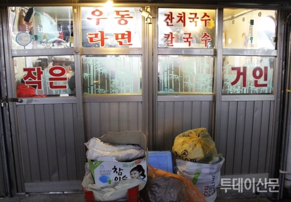 ‘작은 거인’이 생긴 지는 어느덧 33년. 처음 포장마차로 시작해서 작은 컨테이너 가건물이 됐다. 조 할머니는 홀로 막내아들의 손녀를 키우고 있다. 올해 초등학교에 입학하는 손녀를 뒷바라지하려면 조금이라도 돈을 더 벌어야 하는데 걱정이다. 조 할머니는 “여기에 우리 인생살이가 담겨 있다”며 “결혼 안 한 딸과 손녀를 먹여 살리려면 계속 일을 해야 한다”고 답답해했다.