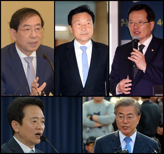 여당에서는 남 지사와 정 의장이 일찌감치 대권 도전 가능성을 열어뒀다면 야권에서는 저마다 대권 도전 가능성을 열어뒀다. 박원순 서울시장은 5월 13일 전남대학교에서 학생 등 4백 명을 대상으로 열린 특강에서 5.18 광주민주화 정신이 평범하게 살 수도 있었던 자신의 인생을 바꿔놓았다면서 “뒤로 숨지 않고 역사의 대열에 앞장서겠다”고 밝혔다. 이는 정치적 해석을 어느 방점에 두느냐에 따라 해석이 달라질 수 있는데 정치권 안팎에서는 대권 도전 가능성을 열어뒀다고 해석하고 있다. 더욱이 서울시장으로서 광주를 방문했다는 것은 상당한 의미가 있다. 최근 국민의당과 더불어민주당이 호남에서 각축전을 벌이고 있는 상황에서 박원순 시장이 호남을 방문함으로써 호남민심에 구애를 한 것이라고 할 수 있다. 이는 대권 도전을 위한 포석이라고 할 수 있다. 물론 앞서 언급한 남 지사처럼 박 시장도 역시 서울시정이 우선이라고 밝혔다. 대권 도전으로 서울시정에 소홀히 하는 것 아니냐는 비판을 면하기 위한 발언이라고 할 수 있다. 하지만 대권 도전 가능성은 그 어느 때보다 높아진 듯하다. 특히 호남에 공들였다는 점에서 앞으로 박 시장의 정치적 행보가 어떤 식으로 전개될 것인지 대충 그림이 잡힌다는 것이 정치권 안팎의 시선이다. 실제로 5월 18일 이헌재 부총리가 서울시청을 방문, 시 정책이 나아갈 방향에 대해 간부 대상 조찬강연을 가졌다. 강연은 박 시장이 이 전 총리에게 직접 요청해 이뤄진 것으로 알려졌다. 이 전 총리는 18대 대선에서 안철수 당시 대선 후보와 함께했다. 그런 이 전 총리가 박 시장의 요청에 따른 시청 강연은 단순히 그 자체로 의미가 있는 것이 아니라고 해석된다. 또한 최근에는 이어령 전 문화부 장관과도 언론 인터뷰를 통해 대담을 나누는 등 각계 원로인사들과 활발한 접촉을 보이고 있다. 이는 대선 도전을 위한 전초전이 아니냐는 해석을 낳고 있다.