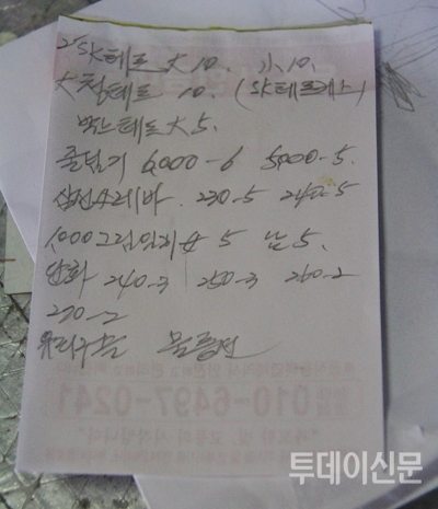 | ▲ 할아버지가 직접 쓴 개학 전 구매할 물건 목록ⓒ투데이신문 | ||