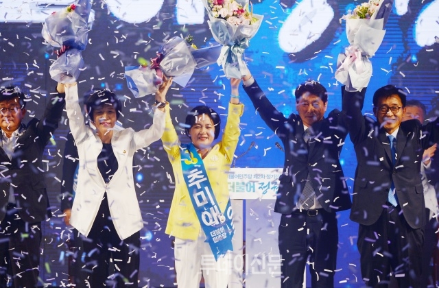 【투데이신문 홍상현 기자】 예상은 하고 있었지만 압도적인 표 차이로 당선될 것이라고 생각은 하지 않았다. 지난 27일 전당대회에서는 친문 세력의 적극적 지지를 받은 추미애 후보가 압도적인 표 차이로 당선이 됐다. 추미애 후보는 54.03%%의 득표율을 얻어 압승을 거뒀고, 이종걸 후보는 23.89%, 김상곤 후보는 22.08%를 득표했다. 신임 당 대표와 함께 부문별 최고위원들도 선출됐다. 여성 부문엔 원외 인사 양향자 후보, 청년엔 김병관 현역 의원이, 노인에는 송현섭 후보가 당선됐다. 앞서 권역별 최고위원 5명은 전국 시도당 대의원 대회 후 호선으로 임명됐다. 서울 제주권에는 김영주, 영남권은 최인호, 인천 경기권은 전해철 현역 의원이 호남권과 강원 충청권은 원외 인사인 김춘진 전 의원과 심기준 강원도당위원장이 각각 맡기로 했다. 대다수가 친문 인사라는 점에서 친문 지도 체제가 완성이 된 것이다.