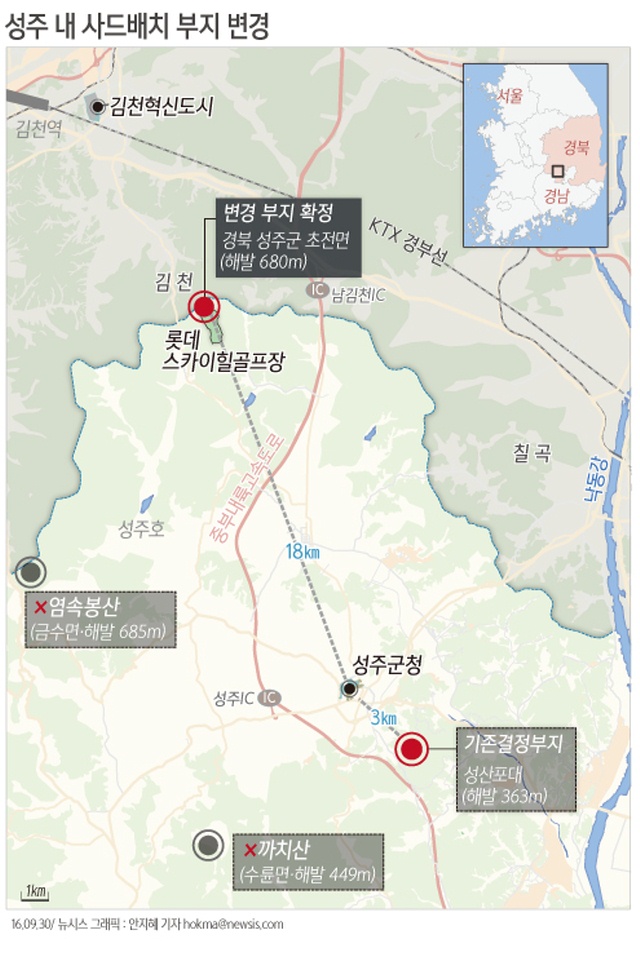 평가 대상이었던 대체부지는 성주골프장과 금수면 염속봉산, 수륜면 까치산 등 3곳이었다. 한·미 군당국이 내년말 실전배치를 목표로 하고 있는 만큼 부지 조성을 위한 시간을 절약할 수 있다는 장점이 있다.