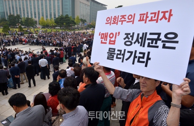 【투데이신문 홍상현 기자】 정세균 국회의장과 새누리당의 진흙탕 싸움이 거세지고 있다. 이정현 대표는 정세균 의장의 의장직 사퇴를 요구하면서 단식 농성에 들어간지 일주일을 훨씬 넘겼다. 단식농성이 해제될 기미는 전혀 보이지 않고 있다. 새누리당이 정세균 의장에 대해 형사고발은 물론 폭로전까지 이어지고 있다. 새누리당은 정세균 의장을 직권남용 혐의로 형사고발했다. 새누리당과 협의가 없이 차수변경을 진행한 것에 대해 직권남용으로 고소를 한 것이다. 국회법에는 차수변경을 하기 위해서는 여야 협의가 있어야 한다고 규정돼있다. 이에 따라 정세균 의장이 직권남용으로 차수변경을 했다는 것이 새누리당의 주장이다. 하지만 정세균 의장 측은 국회법에 따라 차수변경에 대해 통보를 했기 때문에 아무런 문제가 없다고 주장했다. 더욱이 국회 의사처에 이미 물어봤고, 아무런 문제가 없다고 판단했기 때문에 차수변경을 한 것이라면서 한 발 물러날 뜻이 없음을 이야기했다.