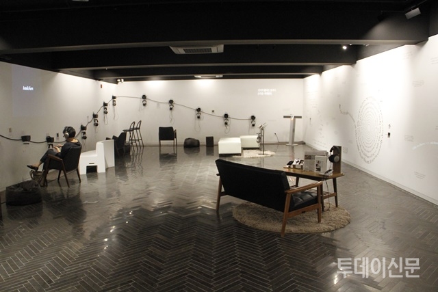 스트라디움 입구를 지나자마자 눈에 들어온 것은 1층에 마련된 사운드 갤러리(Sound Gallery)였습니다. 세 면이 흰 벽으로 둘러싸인 이 공간에서는 어떤 음악을 들을 수 있는 것인지 들어서는 것만으로도 호기심이 마구 샘솟았습니다.