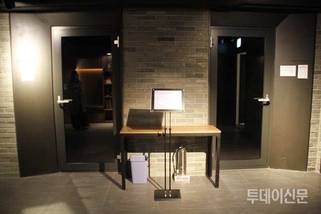 청음 공간은 두 개의 방(A Room, B Room)으로 나눠져 있었고 룸 밖에는 그 날 선곡된 곡들의 목록이 적힌 종이가 붙여져 있었습니다. 뮤직 룸은 10여 명이 함께 음악을 감상할 수 있도록 구성한 하이파이 음악 감상 공간이라고 하네요.