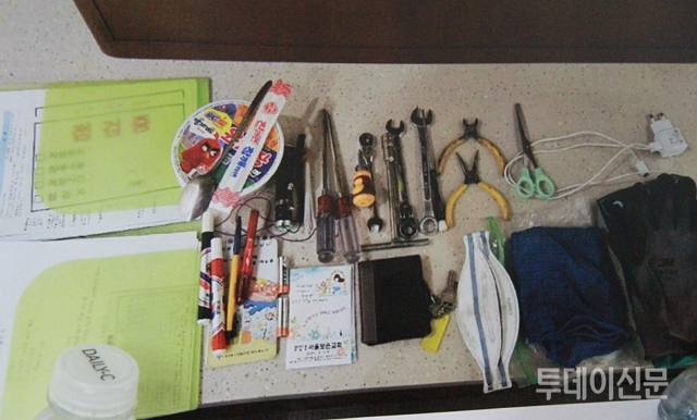 | ▲ 김씨 가방에서 발견된 물건들 ⓒ투데이신문 | ||