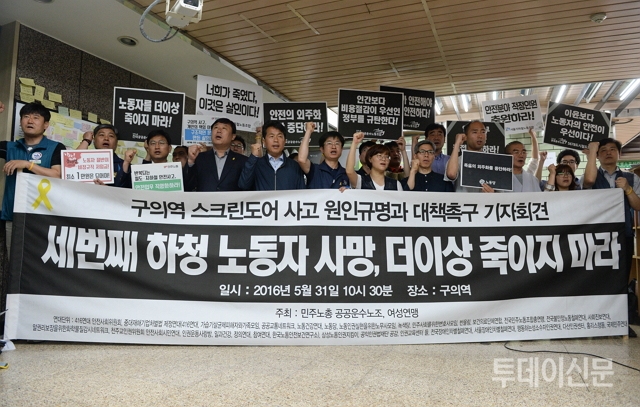 | ▲ 구의역 스크린도어 사고 원인규명과 대책촉구 기자회견 ⓒ뉴시스 | ||