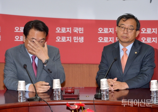 | ▲ 왼쪽부터 새누리당 정진석 원내대표, 이정현 대표 ⓒ뉴시스 | ||