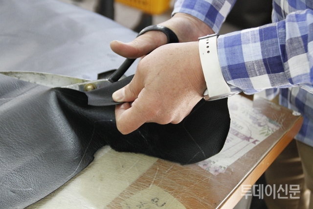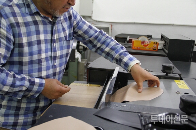 | ▲ 가죽 재단 작업 ⓒ투데이신문 | ||