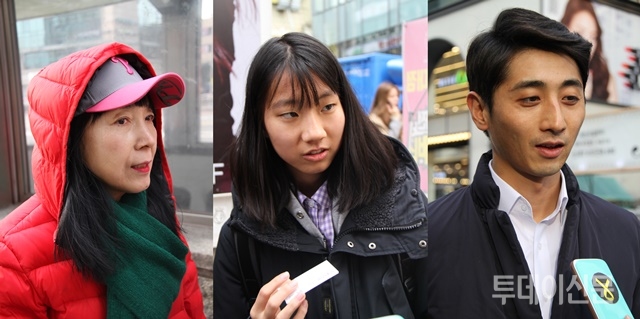 | ▲ 왼쪽부터 유진선(60)씨, 송아현(19)씨, 한동혁(33)씨 ⓒ투데이신문 김민수 인턴기자 | ||