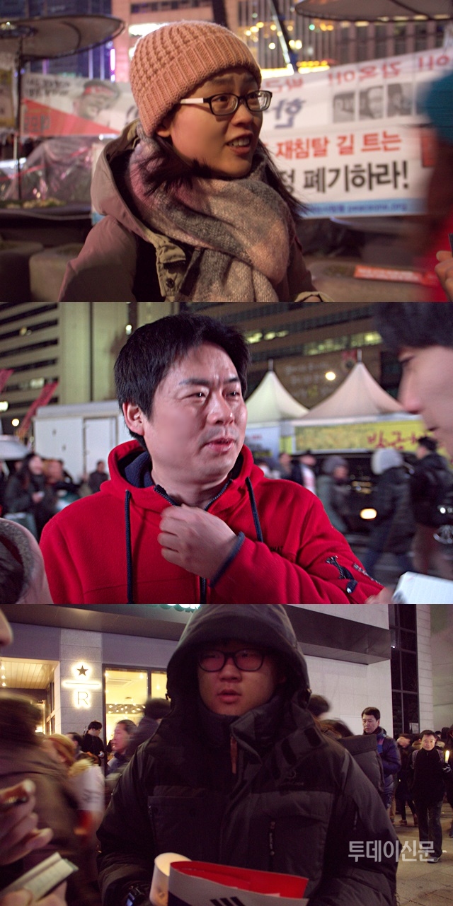 【투데이신문 최소미 기자 김민수 인턴기자】 박근혜 대통령의 탄핵소추안이 가결됐다. 그러나 촛불은 여기서 꺼지지 않고 다시 광장과 거리를 한가득 메웠다. 촛불집회의 중심이라 할 수 있는 광화문 광장에 모인 시민들은 이번 박 대통령의 탄핵안 가결에 대해 어떻게 생각할까. 100명의 시민, 100개의 목소리를 듣고자 <투데이신문>은 10일 광화문 광장을 찾아 집회에 참여한 시민들의 소감을 들어봤다.