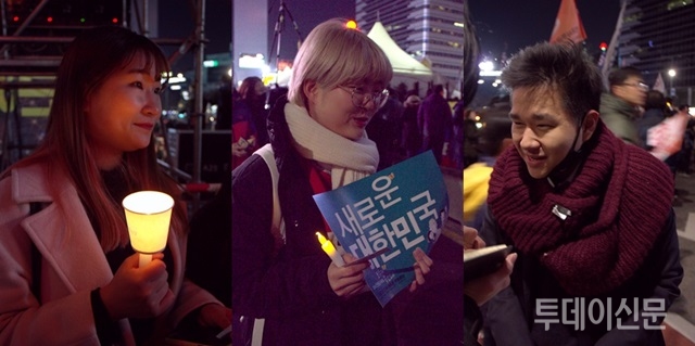 “이번 촛불집회에 참여하기 위해 광주에서 올라왔다. (박 대통령의) 탄핵안 가결이 오로지 국민의 힘으로 나타난 결과 같아 자랑스럽다. ‘최순실 게이트’를 계기로 현 정부에 분노한 이후 정치에 대한 많은 생각이 들었다. 다음 대통령이 누가 될지는 모르겠지만, 박 대통령만큼만 아니었으면 하는 바람이다. 기본만 지켜 달라.”