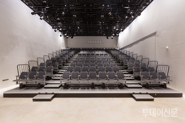 먼저 이곳에서는 영화 상영이 가능하다고 합니다. 87.5평(288.68m²)의 규모로 최대 192석의 좌석을 수용할 수 있고, 무빙월(Moving wall)을 활용해 다양한 공간구성을 할 수 있다고 합니다. 관객들의 요구에 따라 때로는 의자를 갖다놔 자리를 마련하기도, 때로는 방석을 갖다놔 내 방에서 영화를 보는 듯한 아늑한 분위기를 연출하기도 한다네요.