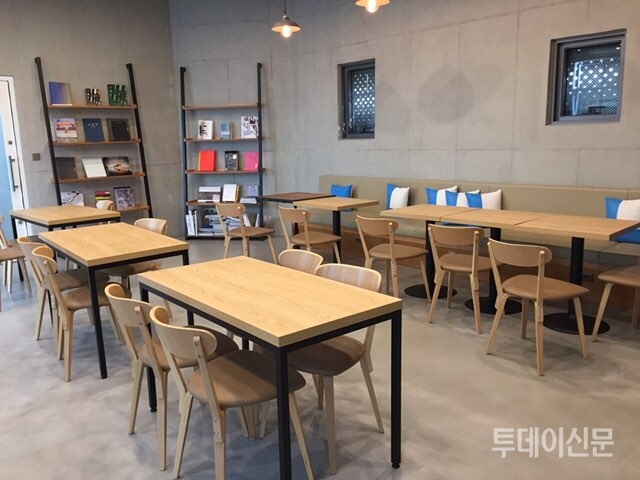 이제 반대편에 위치한 건물을 둘러볼 시간입니다. 1층과 2층을 제외하고 그 위 공간들은 사무실로 쓰인다고 하는데요. 중정을 지나 건물을 들어서니 가장 먼저 카페가 반갑게 맞아줍니다.