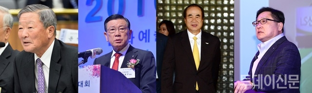 | ▲ 좌측부터 LG그룹 구본무 회장, 금호아시아나 박삼구 회장, 웅진그룹 윤석금 회장, LS산전 구자균 회장. 사진ⓒ뉴시스 | ||