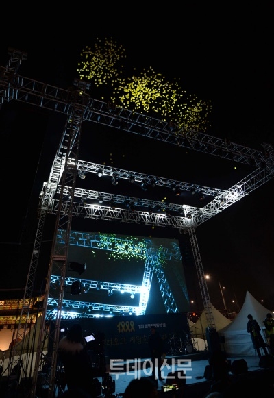 오후 7시에는 ‘세월호 7시간 진실’을 상징하는 소등 퍼포먼스를 진행한 뒤 세월호 참사 1000일을 뜻하는 1000개의 노란 풍선을 하늘로 날려보냈다.