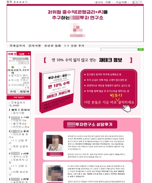 A씨가 운영하는 카페에는 “높지는 않지만 만족하는 정도의 수익률을 경험하고 있다”, “조금씩 투자를 배우고 실천한 결과 ‘월세형 소득’을 만들 수 있었다”며 투자에 성공한 이들의 후기가 공개돼 있다.
