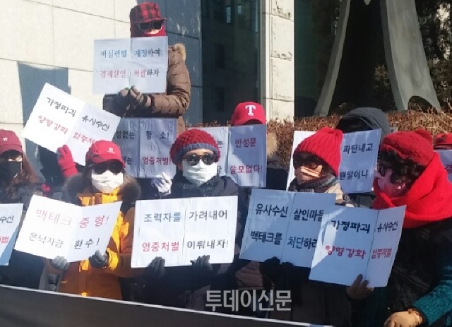 【투데이신문 남정호 기자】 지난 2015년 6월부터 2016년 초까지 3000여명의 투자자로부터 600억원 상당을 받아 챙긴 ‘백만장자의 재테크(백테크)’ 피해자들이 집회를 열고 가해자들의 엄중처벌을 촉구했다.